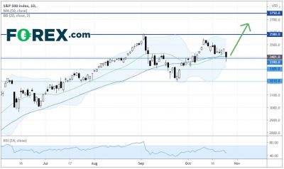 周一,美股遭遇下跌。道指暴跌650點(diǎn),跌幅2.29%,報(bào)27685;標(biāo)普500指數(shù)跌64點(diǎn),跌幅1.86%,報(bào)3401;納斯達(dá)克100指數(shù)下挫188點(diǎn),跌幅1.61%,報(bào)11504。標(biāo)普500指數(shù)日圖–小心謹(jǐn)慎來源:GAINCapital,