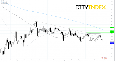 上周,受銀行和保險(xiǎn)類股提振,中國(guó)A50指數(shù)躍升約3%。中國(guó)9月消費(fèi)者價(jià)格指數(shù)(CPI)年率上漲1.7%(預(yù)期+1.9%),PPI年率下跌2.1%(預(yù)期-1.8%)。今天,中國(guó)政府公布的第三季度GDP年率增長(zhǎng)4.9%(預(yù)期+5.5%)。9月工