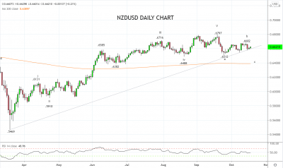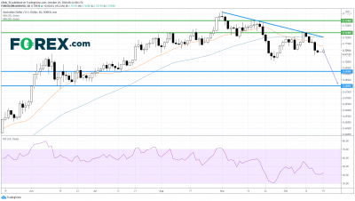 今天上午,中國(guó)公布的第三季度GDP季率增長(zhǎng)2.7%,遠(yuǎn)低于預(yù)期的+3.3%。按年率計(jì)算,GDP增長(zhǎng)4.9%,預(yù)期為+5.1%。由于澳大利亞經(jīng)濟(jì)與中國(guó)關(guān)系密切,中國(guó)任何數(shù)據(jù)表現(xiàn)不及預(yù)期都會(huì)對(duì)澳元產(chǎn)生負(fù)面影響。技術(shù)面角度看,日線圖上,澳元/美元
