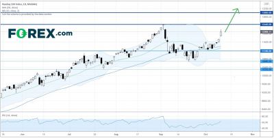 國慶假期后中國股市上漲。中國A50指數(shù)收盤價創(chuàng)下2個月高點。上周五發(fā)布的9月財新中國服務(wù)業(yè)PMI升至54.8,好于54.3的預(yù)期值和54.0的前值。該報告的要點包括:“企業(yè)活動與新增訂單的增速雙雙加快(......)就業(yè)連續(xù)第二個月增長(.
